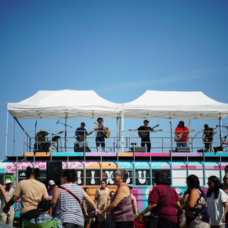 -Dans la même lignée, nous avons avalé des kilomètres de route pour une tournée sur la Côte-Nord nommée Innu Nikamu sur la route en marge du 40e d’Innu Nikamu ! Le festival a fait briller les talents autochtones des Escoumins à Natashquan lors de 5 arrêts inoubliables.